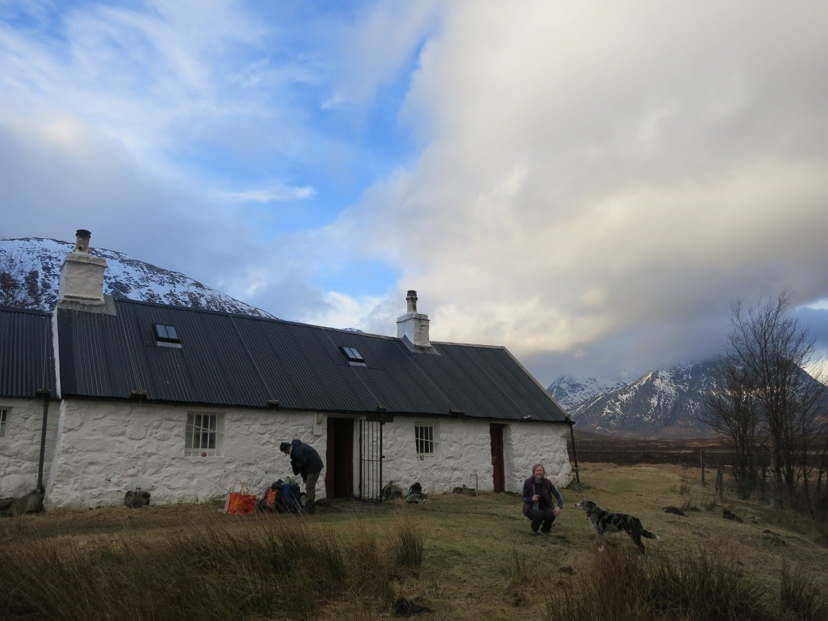 Apart from the Christmas meets this was DMC’s most popular meet so far and it’s easy to see why. Glencoe is justifiably a big draw for all who love the mountains. After a gorgeous Friday up Meall a Bhuiridh, most people only saw the inside of a cloud on Saturday, with groups on Mam na Gualainn and Beinn na Caillich, and Ben Inverveigh. The mtb trails in the area were too snowy for much fun this early in the year but those around The Ben were in great condition. Sunday turned out perfect, words can’t do it justice so view the photo album! The cottage was cozy with a great atmosphere and the catering just perfect, including luxurious pancakes for breakfast. The most bizarre thing was walking out of the front door to find a barrage of photographers pointing their lenses at us. No, Princess Kate wasn’t staying with us; that’s just what you get for choosing to stay in the most photographed cottage in Scotland. Below is a write-up from Paul.