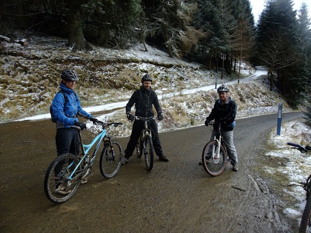 Alex, Dan, Roland and Niall visited a snowy Glentress and took on the “easy” green and blue runs. Alex had an amusing accident in the skills park (see video) and a mechanical while everyone else had a relatively painfree and breakage free day. Well except for Dan’s puncture and Roland’s seat post being frozen. The day was finished off with mass gluttony in the café.