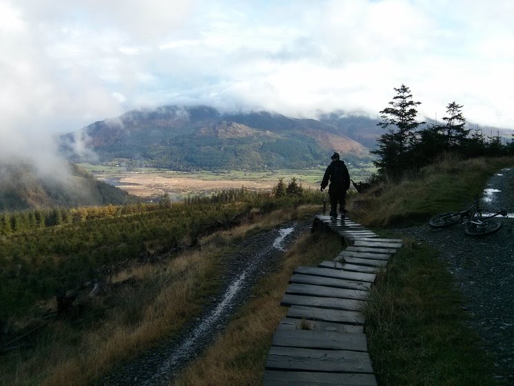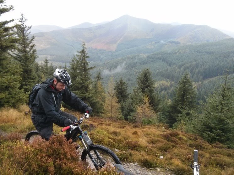 Was looking good for Ae, too, until we got there! Then the rain came back. The 19km “Ae Line” route started out good, but we were getting a little trail-centre fatigued by the end – the rolling undulations can wear pretty thin into the 40th kilometre, and we were pretty peeved that the much-feted “Omega Man” descent actually proved to be more than three-quarters climbing! We came out of it higher than where we’d dropped in. But still, a final, jumpy blast to the car park in the rain, and we both agreed it was a day well spent, and definitely the right plan for the conditions!
