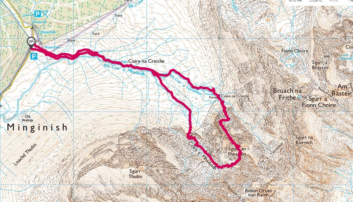 We then proceeded to the summit of Sgurr Dearg and getting a good view of the route that would have been useful earlier. The descent was longer than expected and we caught the other group just as we were reaching the car park heading back to the hostel after a good day on the hill.