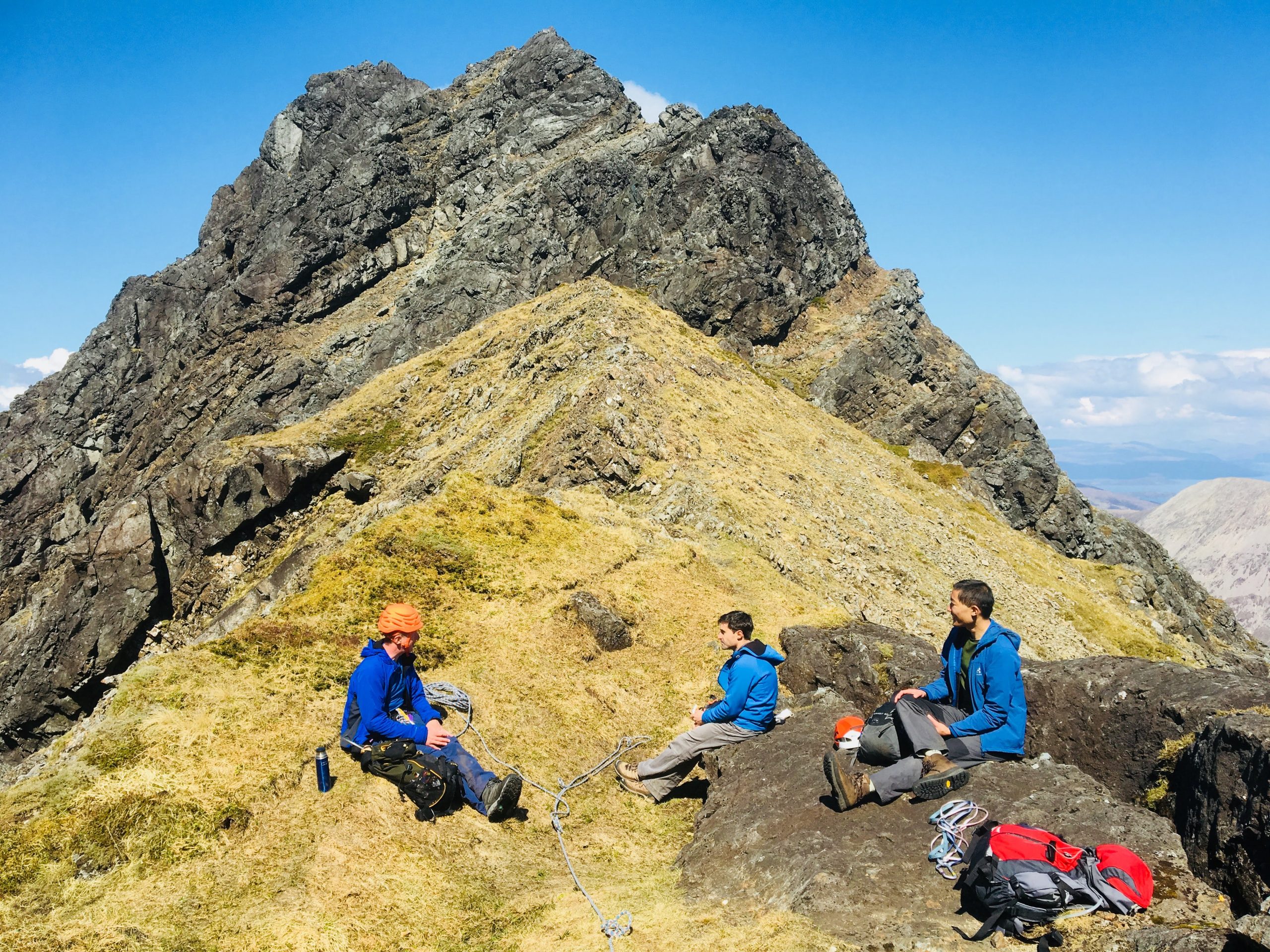 Anyway, Jim roped up and soloed the narrow east ridge. Mhairi clipped in and followed him – a moderate climb made worse by the sheer drops on either side.